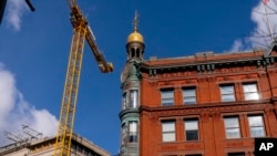 2022年2月14日是佛州帕克兰校园枪击案四周年日。在华盛顿白宫对面的西北区第15街和宾夕法尼亚大道,一名帕克兰枪击受害者的父亲爬上一架建筑起重机。(美联社)