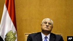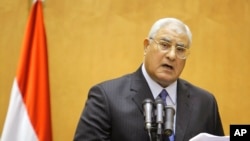 星期四,埃及宪法法院院长阿德勒•曼苏尔在国家电视台转播的一次仪式上宣誓就任临时总统。他随后誓言捍卫埃及革命的价值观。