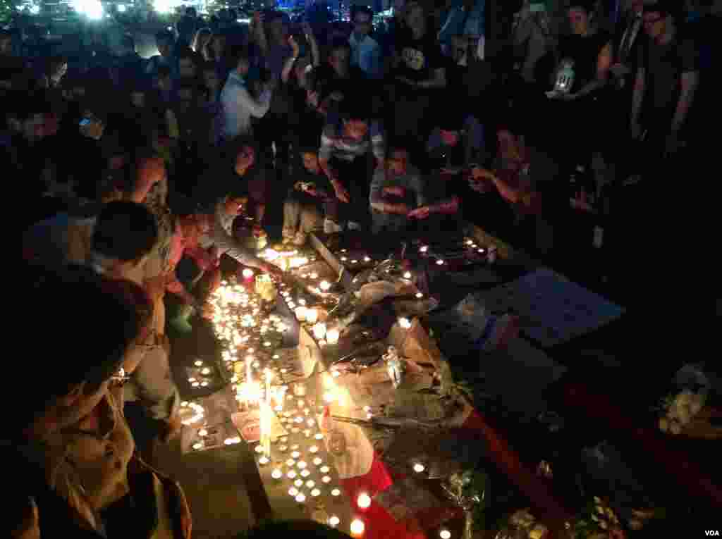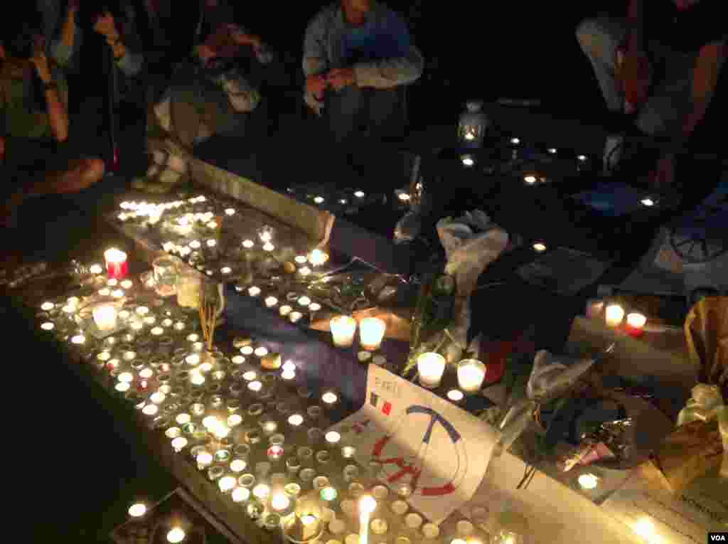 居港法国人及民众烛光悼念巴黎遇难者(美国之音海彦拍摄)