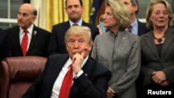 美国总统特朗普在白宫出席一个签字仪式(2018年1月10日)