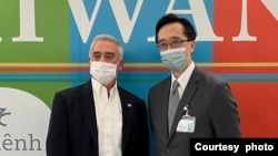 众议院情报委员会共和党成员温斯特鲁普(图左)2022年10月12日抵达台湾,展开为期三天访问。(照片来源:台湾外交部)
