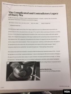 不过,吴去世后劳改基金会/纪念馆一位前主管对美国之音说:这种说法和数字是不正确的。纽时报道提到的有19万美元不知去向,“这都是不对的。”